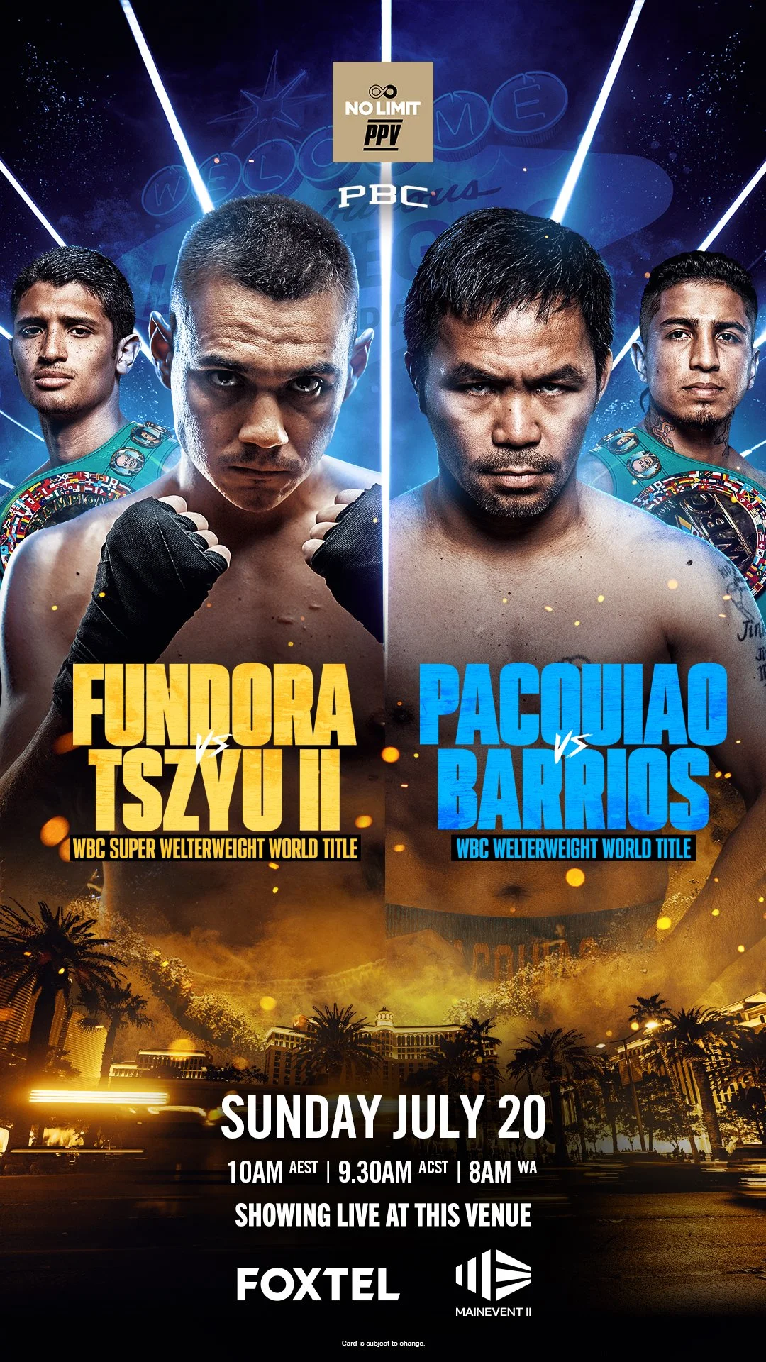 This massive fight will be shown on all the main screens across the venue on Sunday the 20th of June.